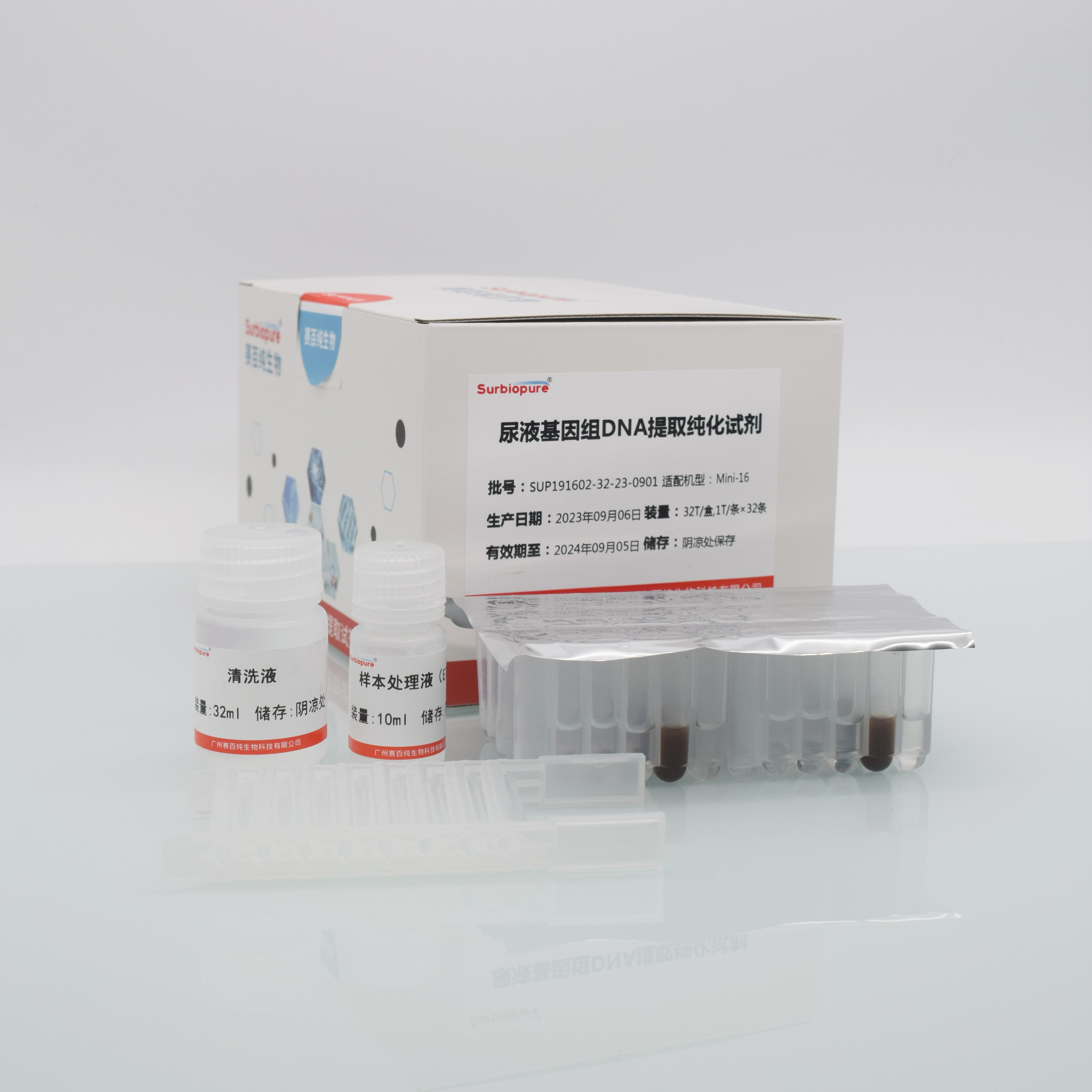 This kit uses spin columns that can specifically bind DNA and a